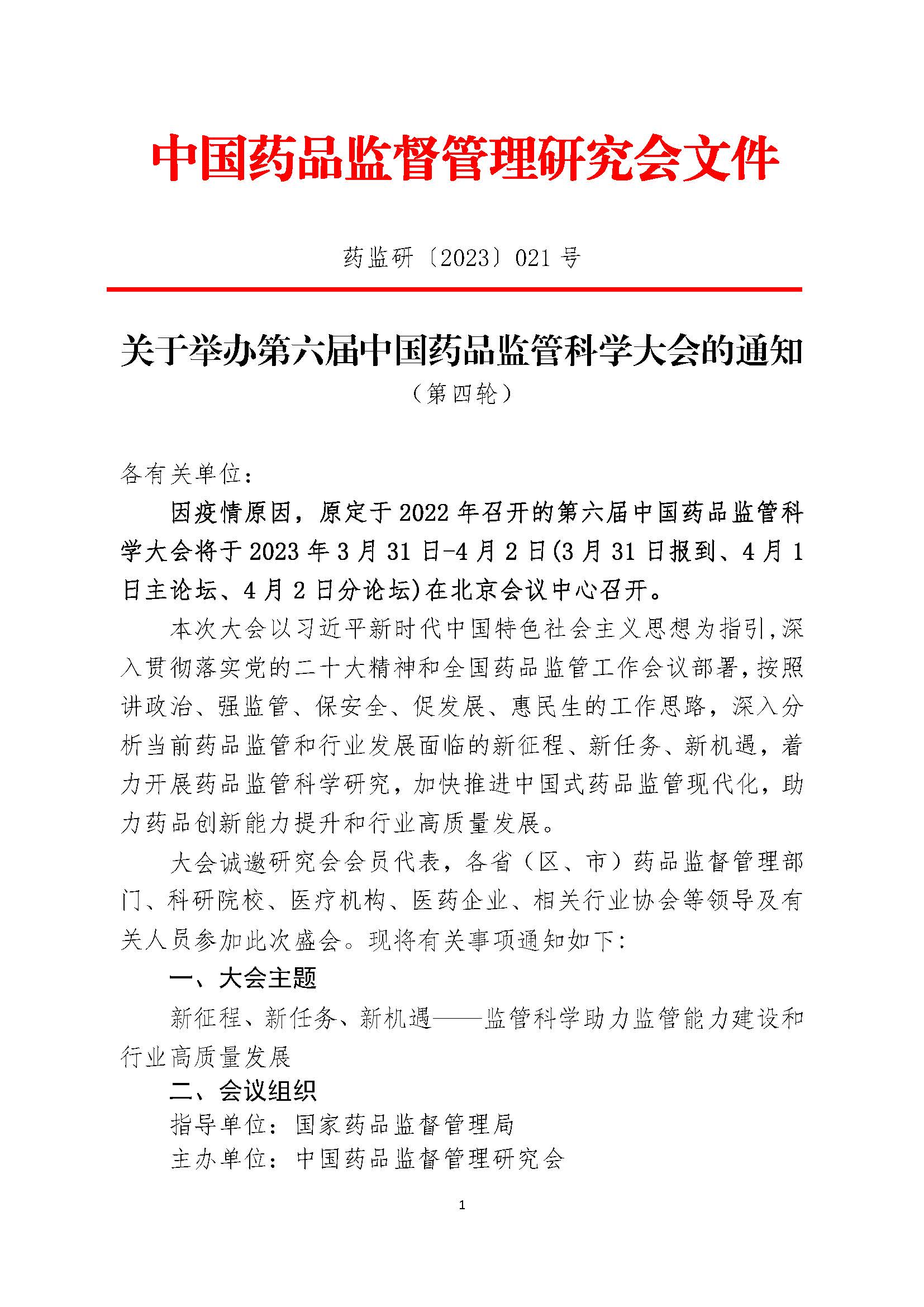 关于举办第六届中国药品监管科学大会的通知(第四轮)