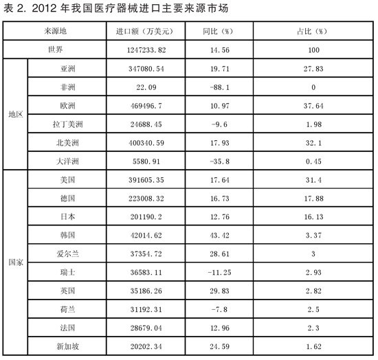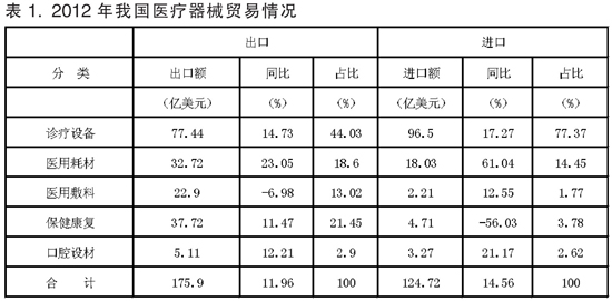 2012年我国医械进口保持较高增速