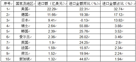 表1. 前十大进口来源国家和地区