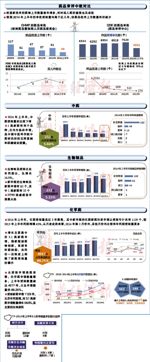 2014年7月21日,《医药经济报》第F03版刊载了2014年1-6月药品审评情况,现全文转载。