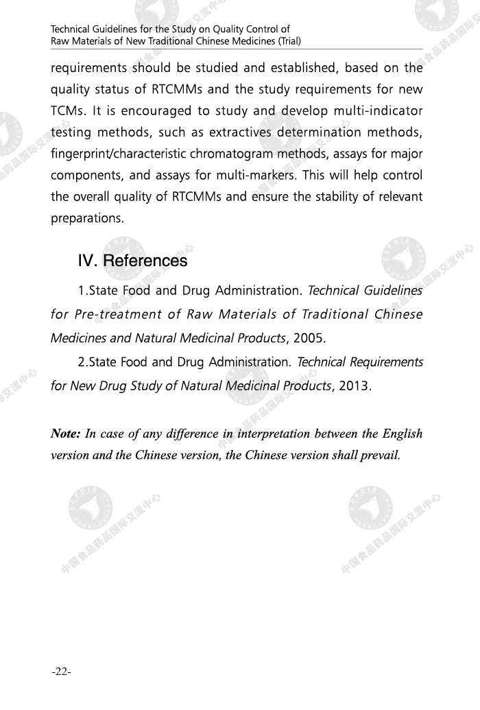 Technical Guidelines for the Study on Quality Control of Raw Materials of New Traditional Chinese Medicines (Trial) (Bilingual Edition)
