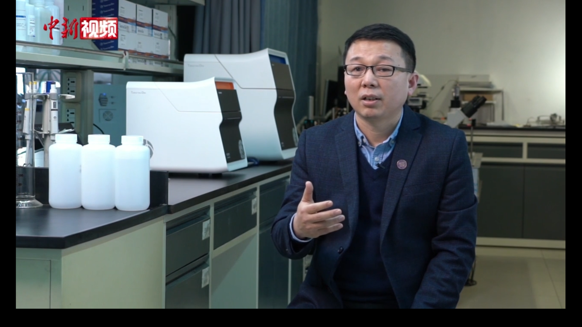 Guo Yong, professor at Tsinghua's School of Medicine, talks about the new COVID-19 testing kit on camera. [Photo/Chinanews.com.cn]